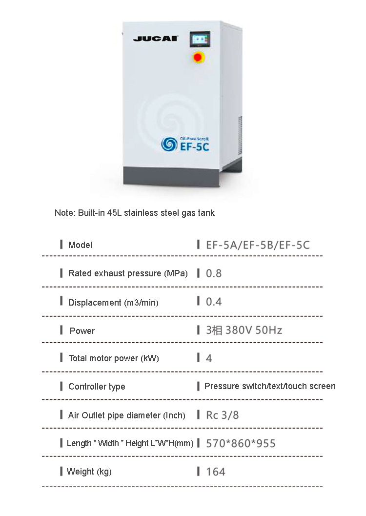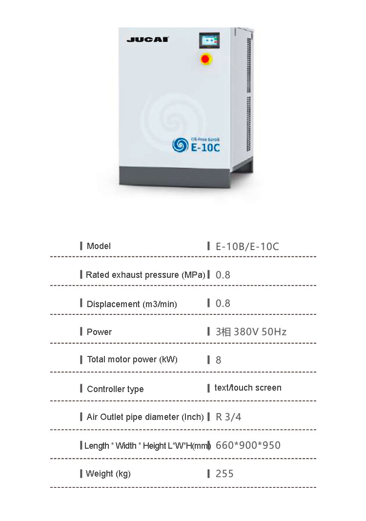 Product name:8kW 0.8m3/min Oil-free scroll air compressor E-10C Silent food and beverage medical laboratory air compressor